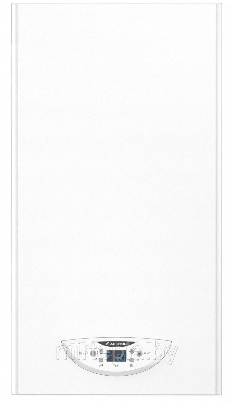 Настенный газовый котел ARISTON HS X 24 CF - это двухконтурный отопительный атмосферный котел с открытой камерой сгорания мощностью 24 кВт для отопления и горячего водоснабжения, с компактными размерами и стильным дизайном. Он предназначен для отопления частных домов, коттеджей, загородных домов, дач площадью до 240 кв. м. а также для организации горячего водоснабжения. Котел работает на природном магистральном газе, но при необходимости котел можно переоборудовать для работы на сжиженном газе, для этого необходимо приобрести комплект жиклеров. ARISTON HS X 24 CF имеет раздельные теплообменники, что является большим преимуществом там, где вода считается жесткой. Общий вид котла: